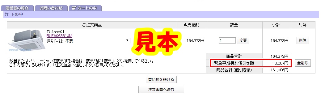 見本画像の通り、カートシステムで自動的に2%値引きされます。